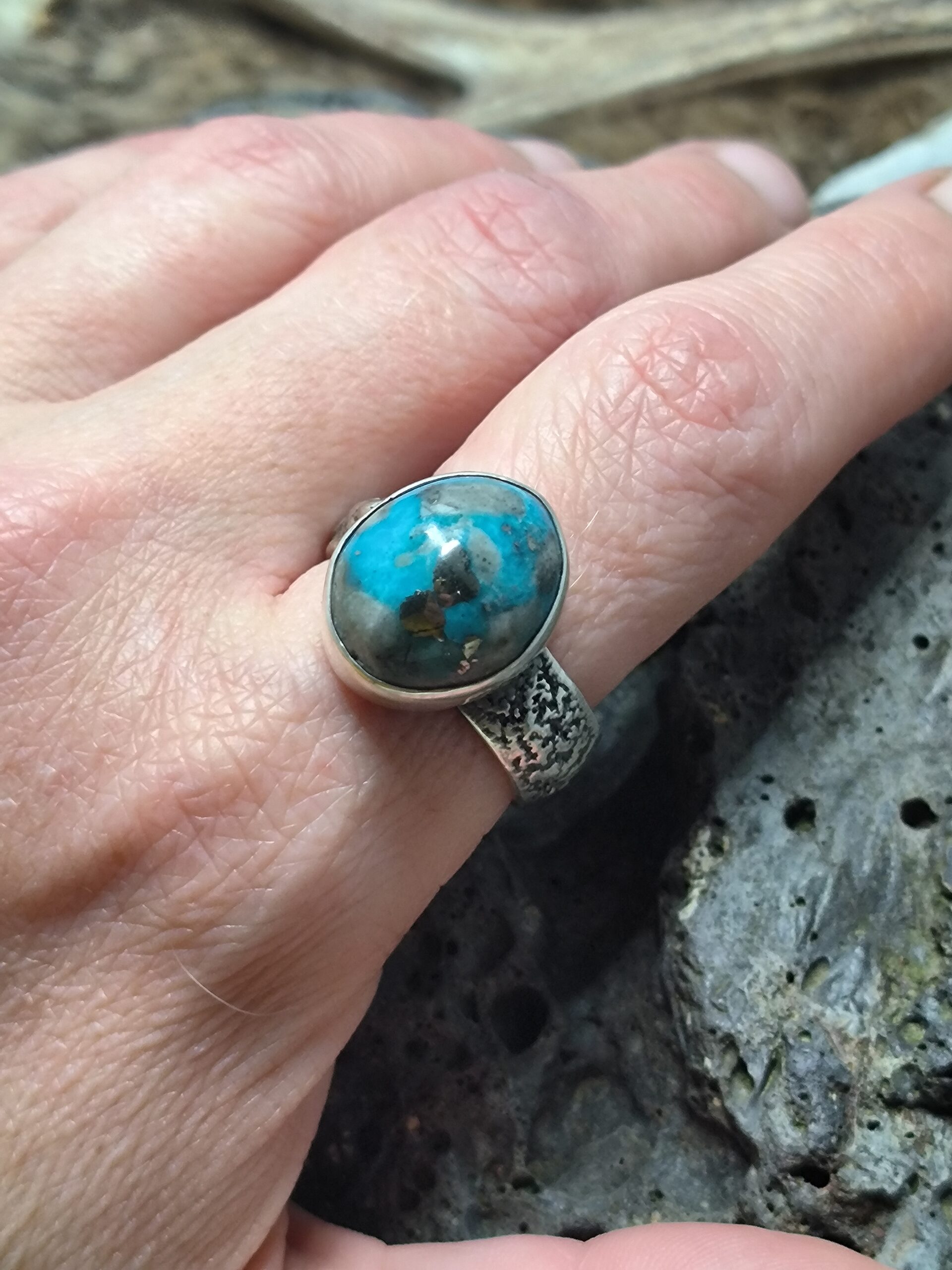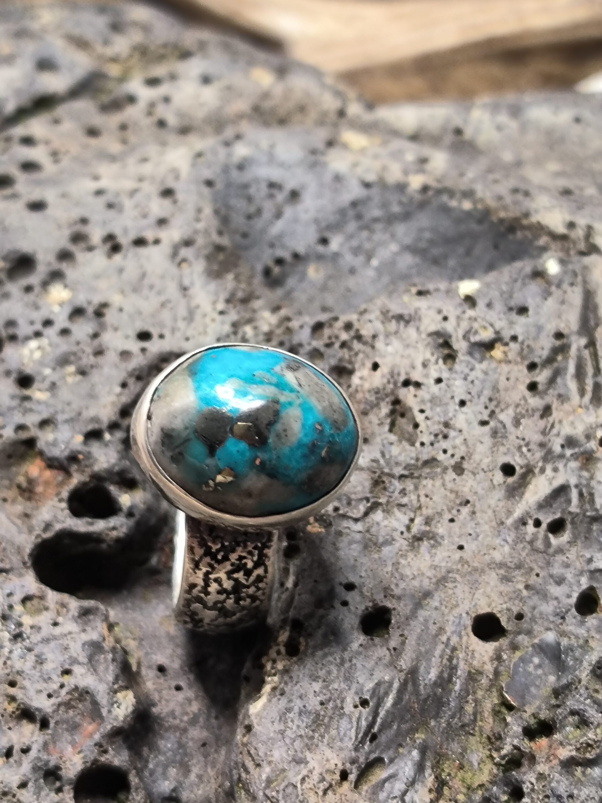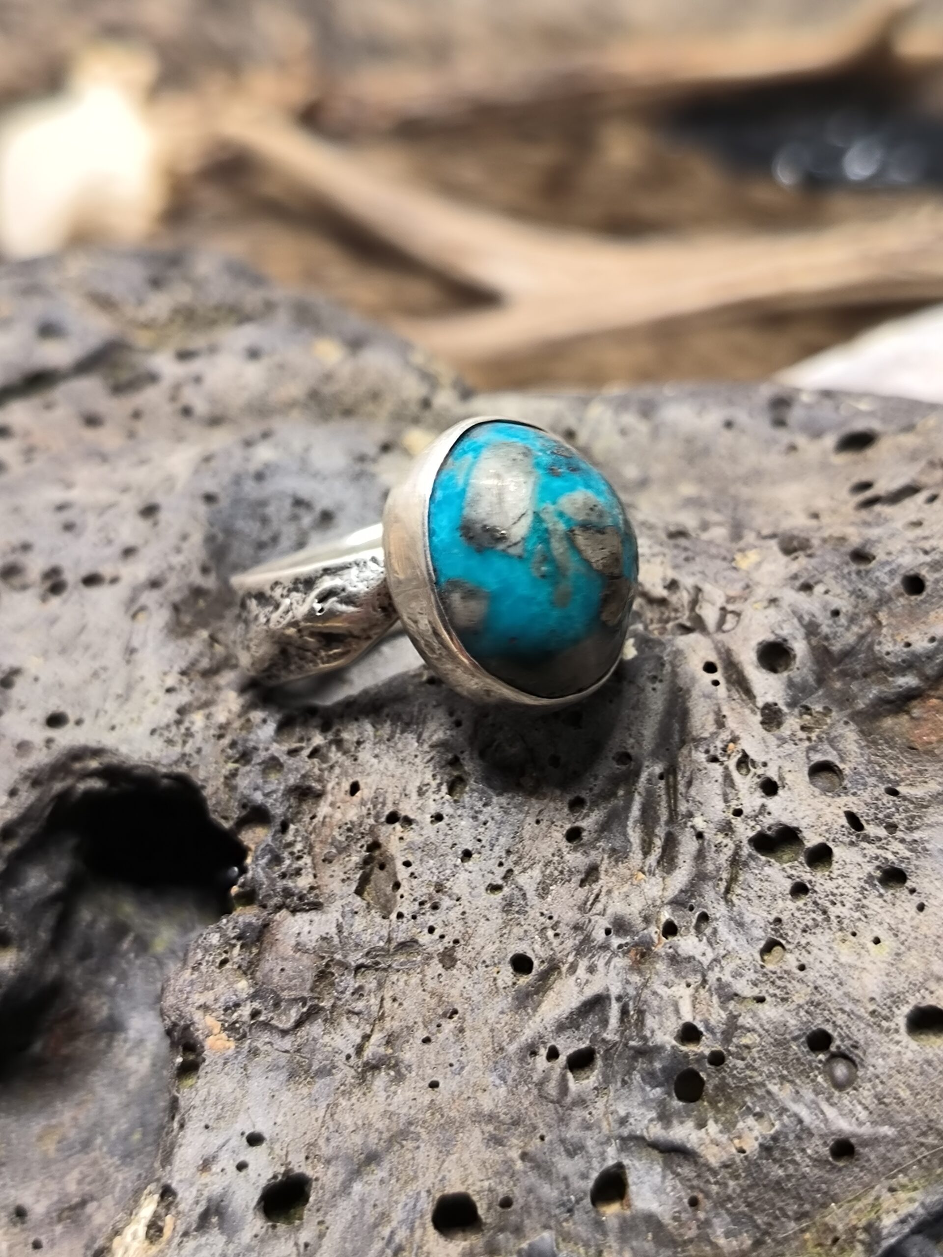 Magnifique bague artisanale en argent sertie d’une turquoise