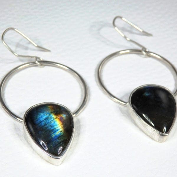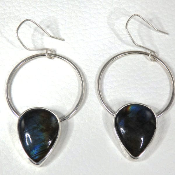 Superbes boucles d’oreilles ethniques en Argent massif, composées de 2 superbes Marcassites noires argentées serties en argent par mes soins.