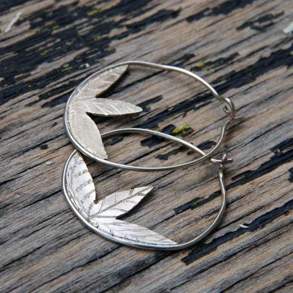 Boucles d'oreilles Argent et Laiton Feuilles de Gingko Biloba , triangles
