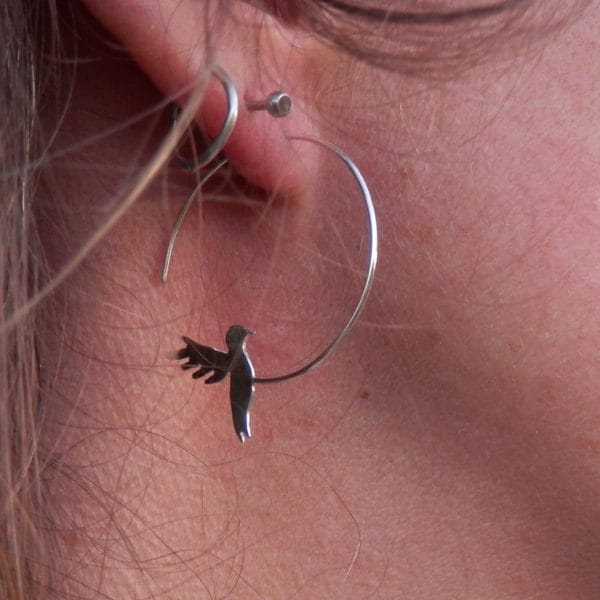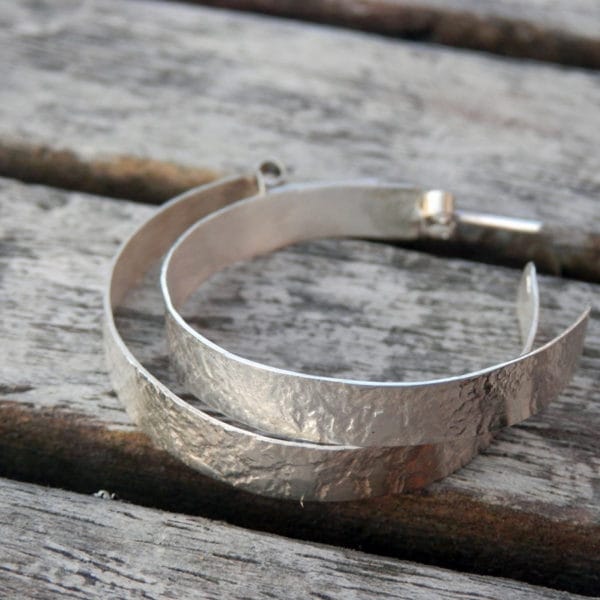 3 tiges en argent martelées pendent afin de donner du mouvement