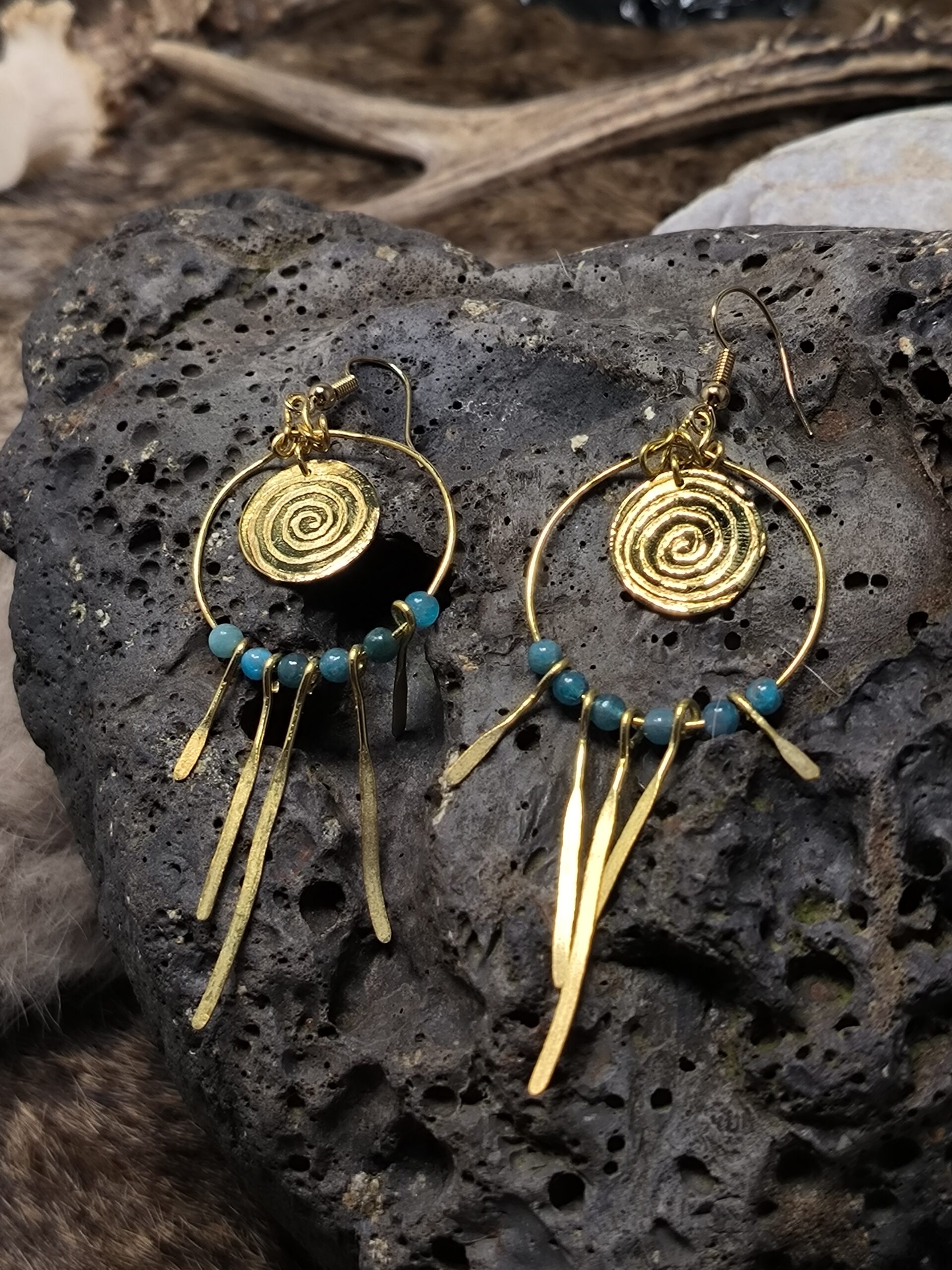 Boucles d’Oreilles Spirale Sacrée en Laiton & Apatites naturelles
