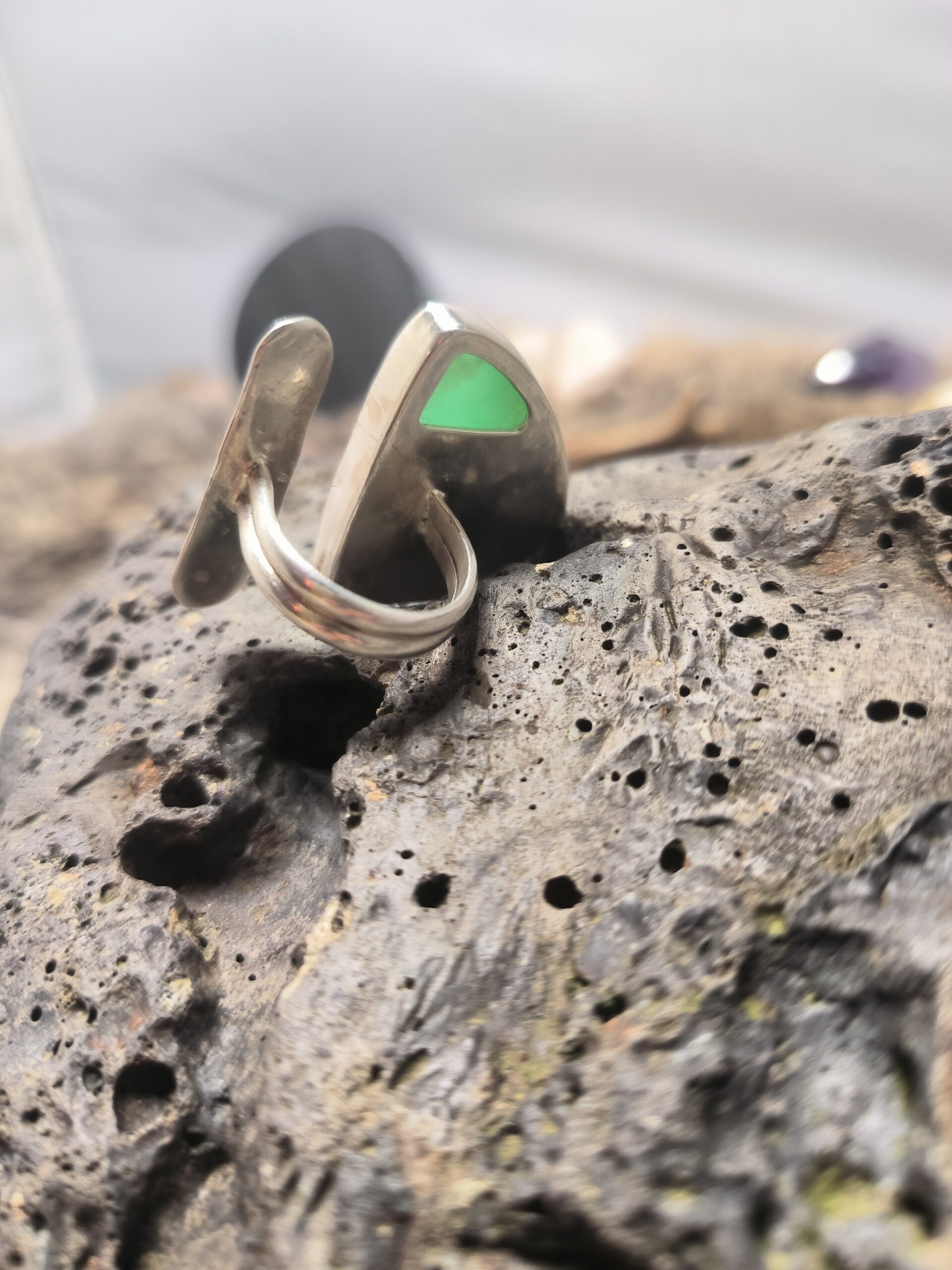 Grosse Bague design en argent 925 avec chrysoprase naturelle