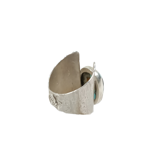 Grandes plumes entièrement découpées par mes soins dans une plaque d’argent massif puis légèrement texturées. Elles sont ornées de 2 magnifiques cabochons de turquoises naturelles d’Arizona