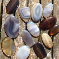 Les Agates sont des pierres que l’on trouve en grand nombre de variétés différentes de par le monde. Elles font partie de la famille des Quartz et son origine vient de la rivière Achates en Sicile. L’agate mousse, quand à elle, peut à peine être considérée comme une agate puisque il s’agit d’une calcédoine incolore dans laquelle sont inclus du silicate vert, chlorite, oxyde de magnésium et fer qui lui donnent son aspect de mousse.