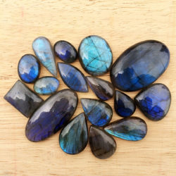 La Labradorite Arc-en-ciel, irisée, connue sous le faux nom commercial de « Pierre de lune arc-en-ciel », possède les propriétés similaires de celle de Madagascar.
