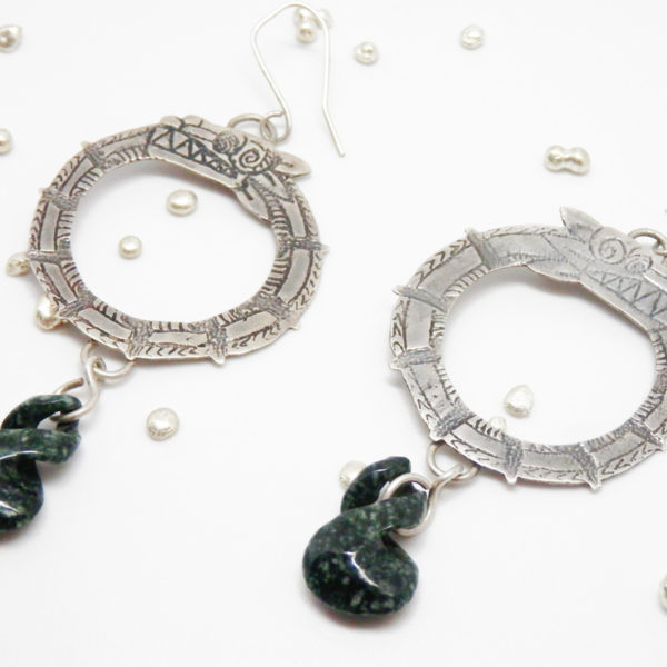 Boucles d’oreilles Quetzalcoatl Jade maya Argent massif