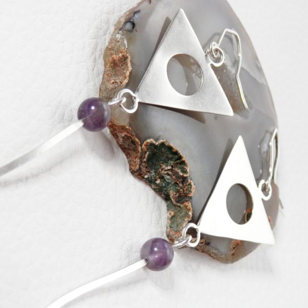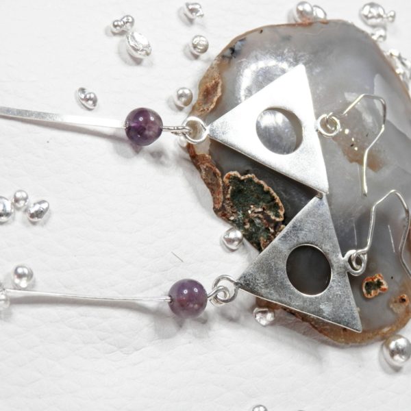 Boucles d’oreilles triangles et Améthystes Argent massif
