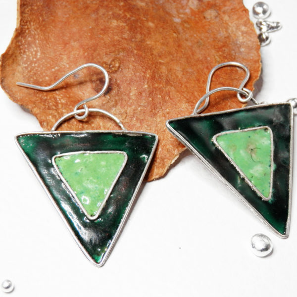 Boucles d’oreilles triangles en Argent massif et Emaux