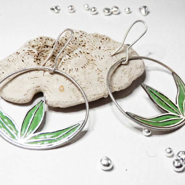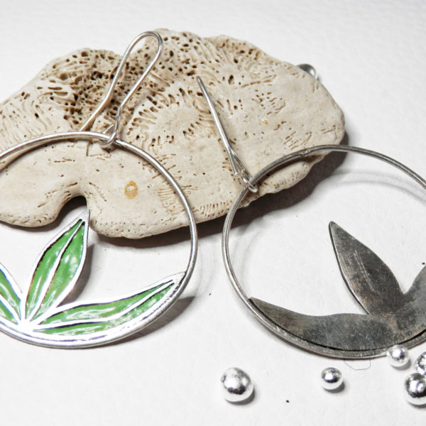 Boucles d’oreilles végétales en Argent massif et Emaux