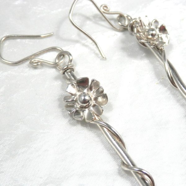 Longues boucles d’oreilles fleurs et feuilles argent massif
