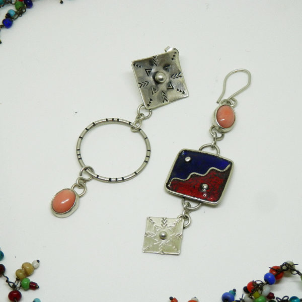 Longues boucles d’oreilles asymétriques Ethniques pendantes Argent