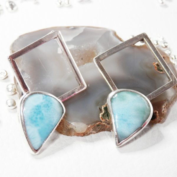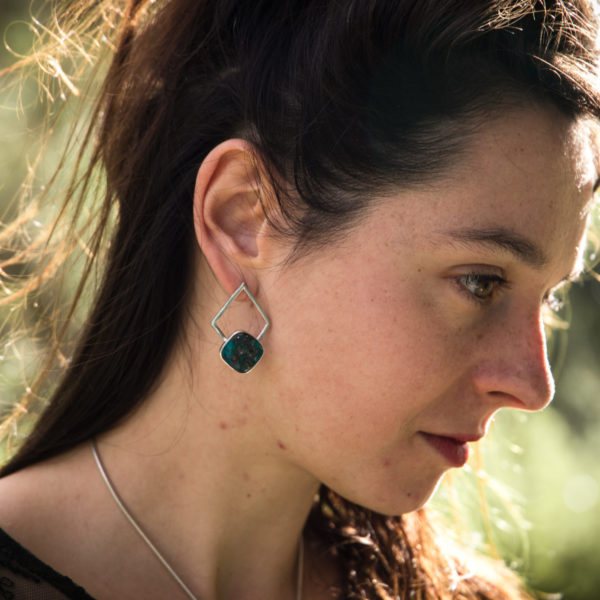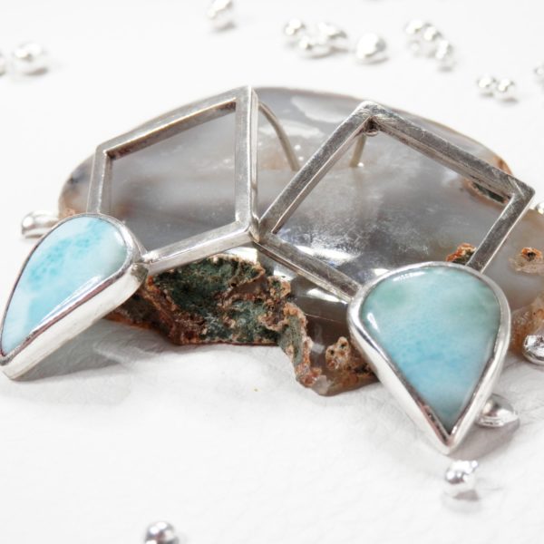 Boucles d’oreilles design argent massif en forme de losange serties de larimars