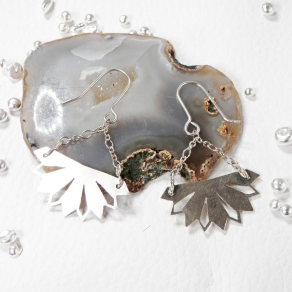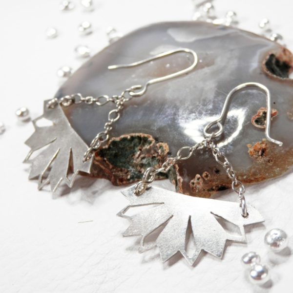 Boucles d’oreilles fleur de lotus en forme de demi-soleil en argent massif.