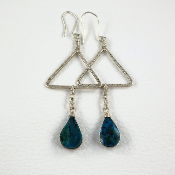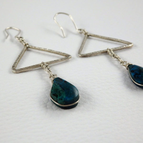 Longues boucles d’oreilles triangles et chrysocolles argent massif 925