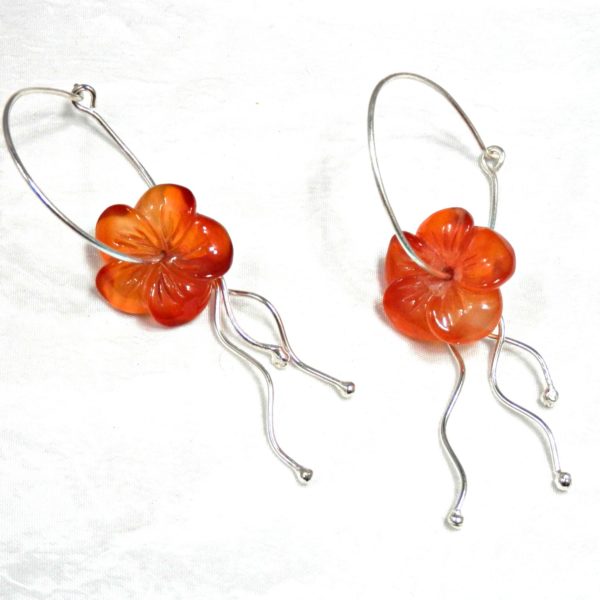 Créoles fleurs cornaline orange Argent massif