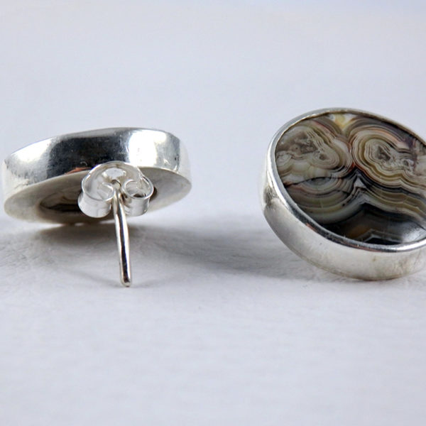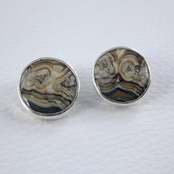 Boucles d’oreilles agate crazy lace rondes argent
