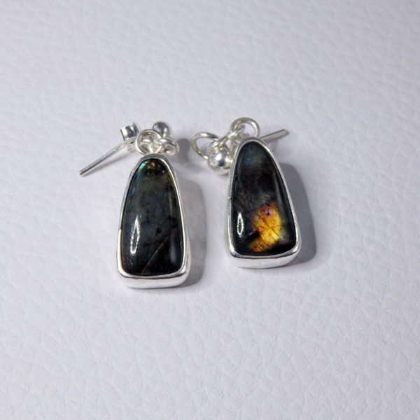 Boucles d’oreilles labradorites jaunes argent