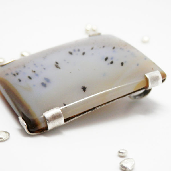 Pendentif design en Argent massif serti d’une Agate dendritique.