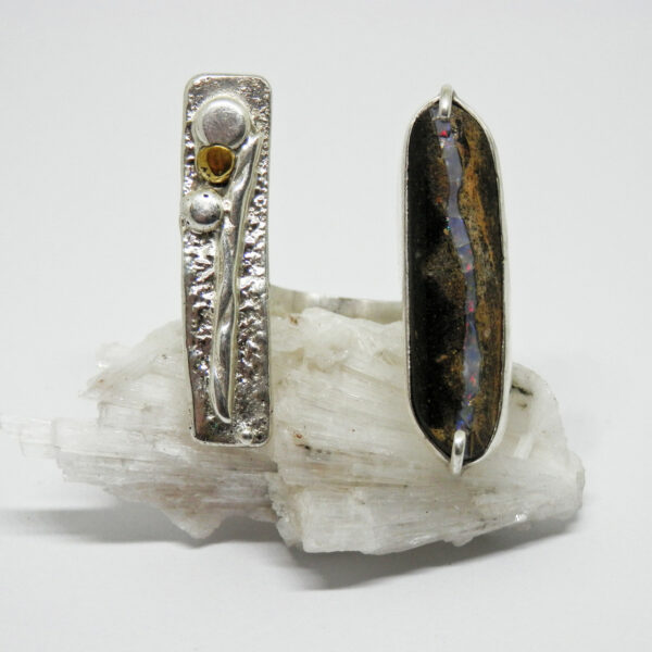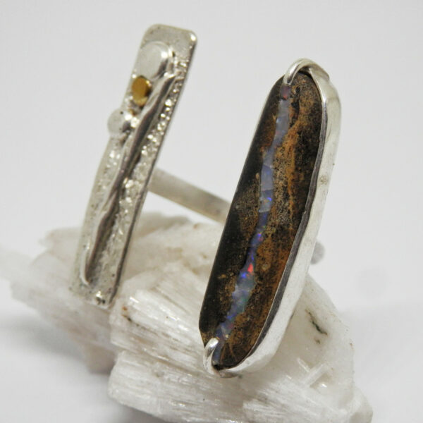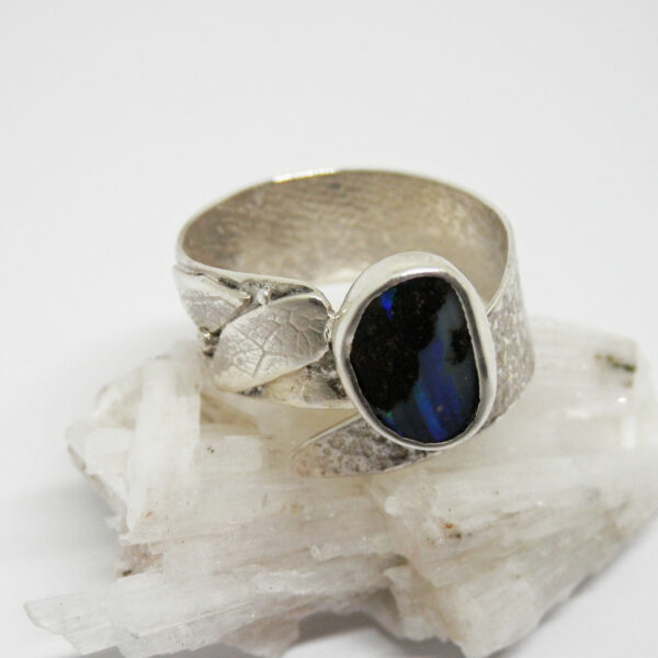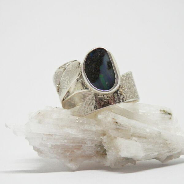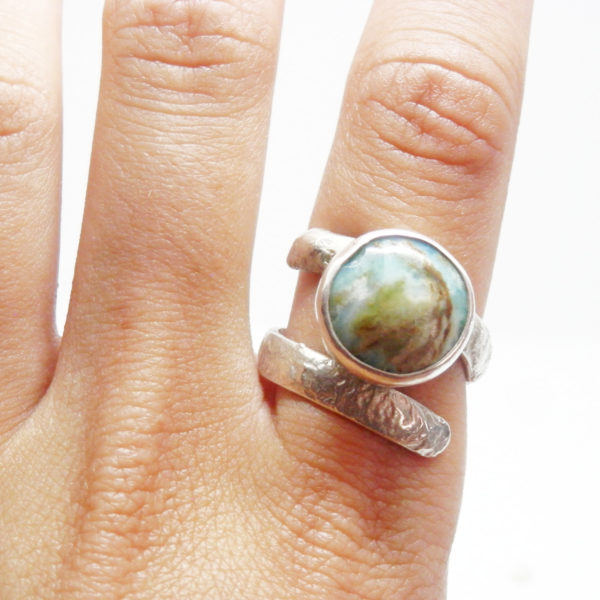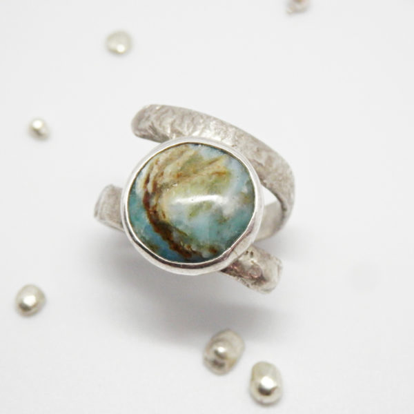 Bague ajustable en Argent massif texturé, serti d’une Opale du Honduras.
