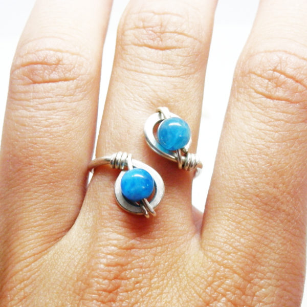 Bague Apatites en argent massif, modèle ajustable et disponible avec d’autres couleurs.