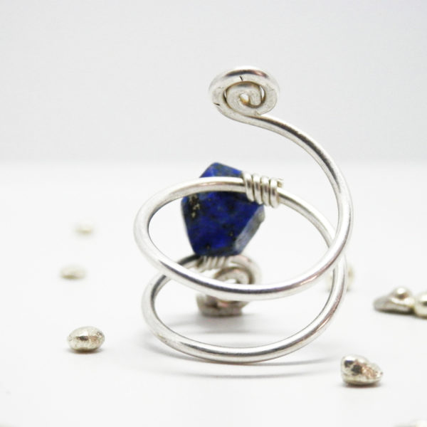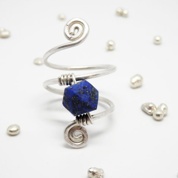 Bague spirale Lapis Lazuli en Argent massif, ajustable.