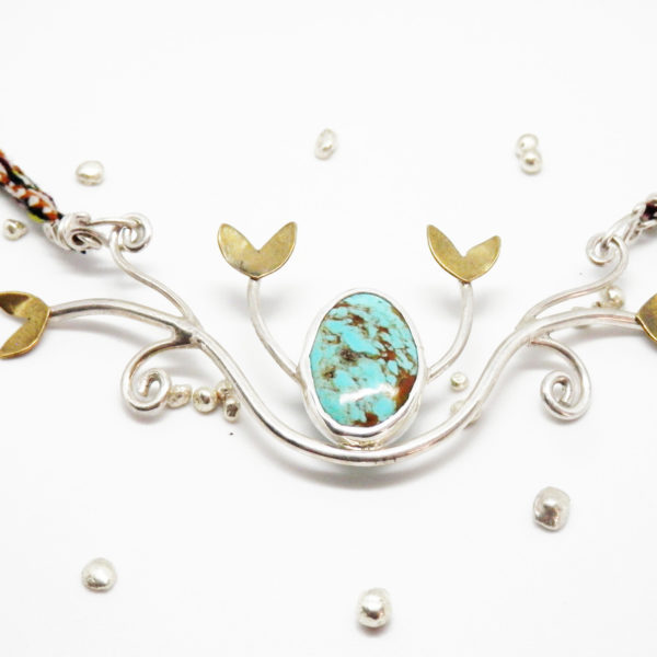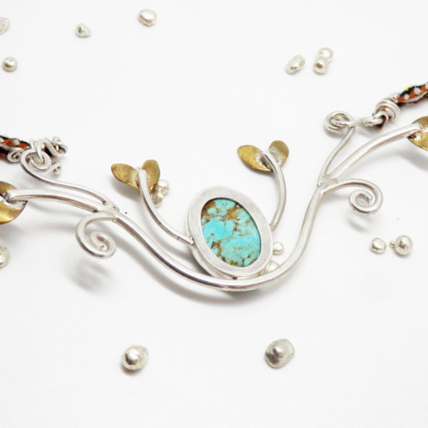 Diadème/Collier elfique Turquoise Argent massif et Laiton
