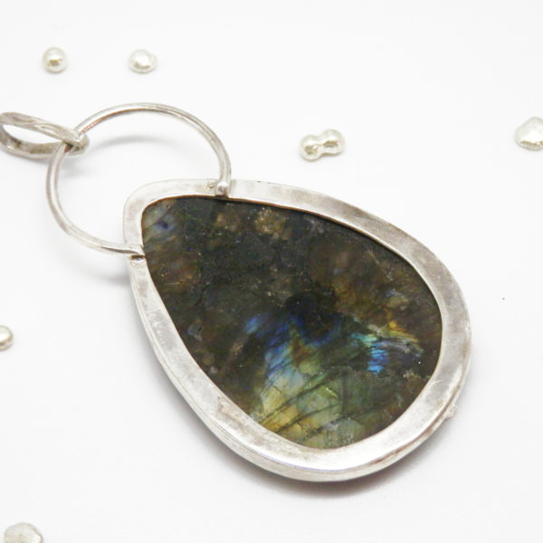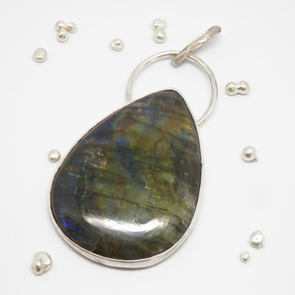 Pendentif en Argent massif serti d’une superbe Labradorite bleue.