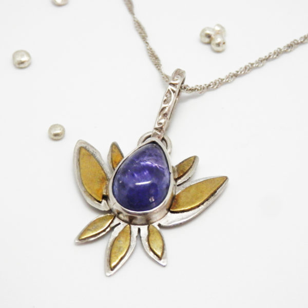 Pendentif fleur de lotus en Argent massif et laiton serti d’une Tanzanite.