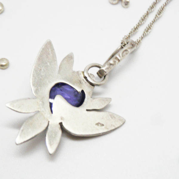 Pendentif Lotus Tanzanite Argent massif Laiton