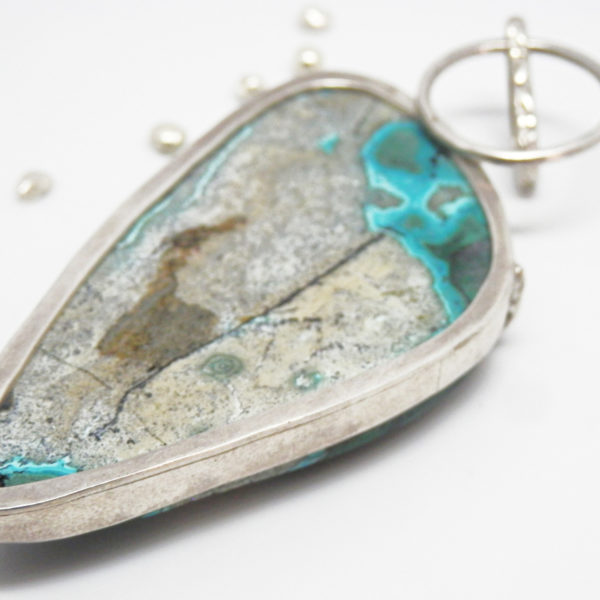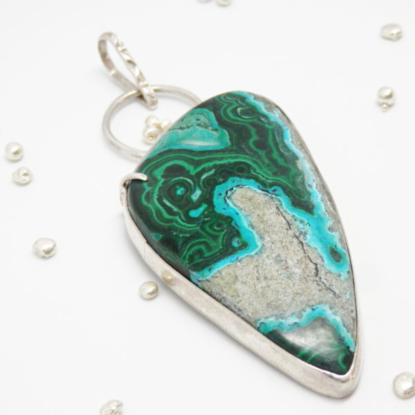 Pendentif en Argent massif serti d’une Azurite Malachite.