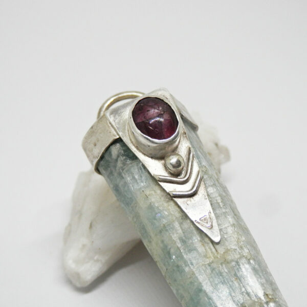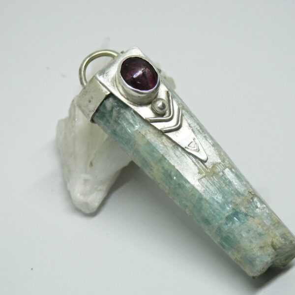 Pendentif ethnique cristal d’Aigue marine Rubis étoilé Argent massif