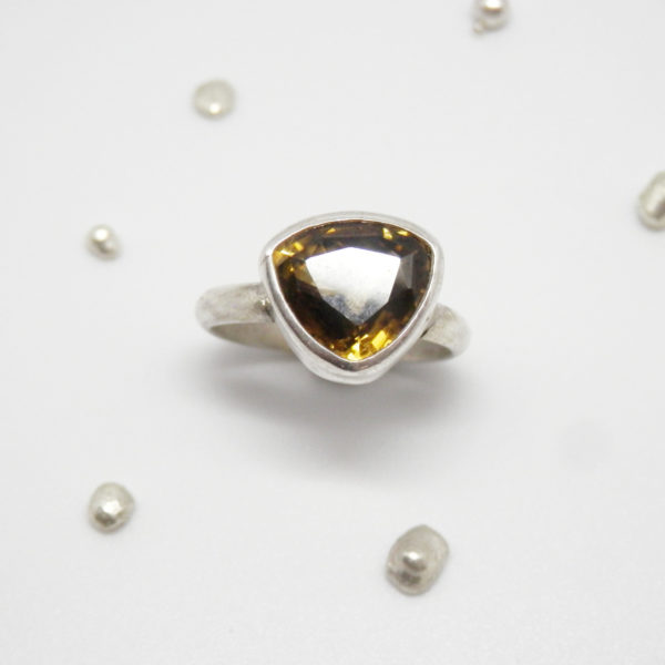 Bracelet ajustable en Argent massif sertie d’une magnifique citrine facettée.