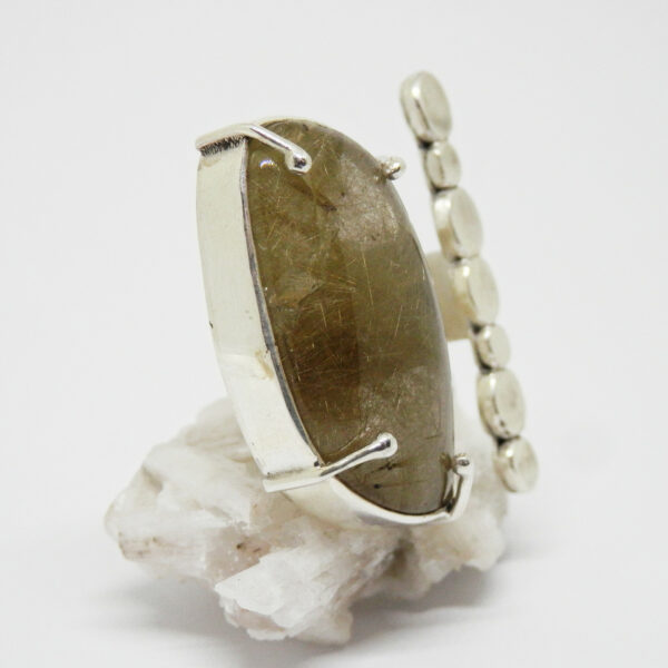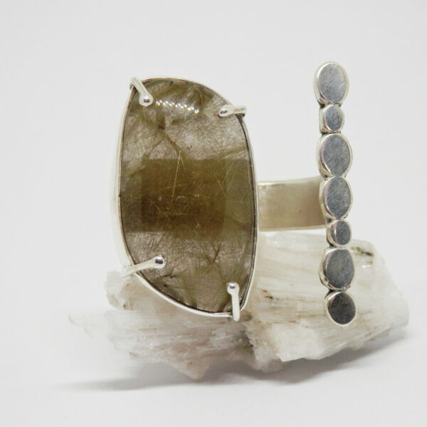 Superbe bague au design original et moderne en Argent massif et serti d’un Quartz rutile.