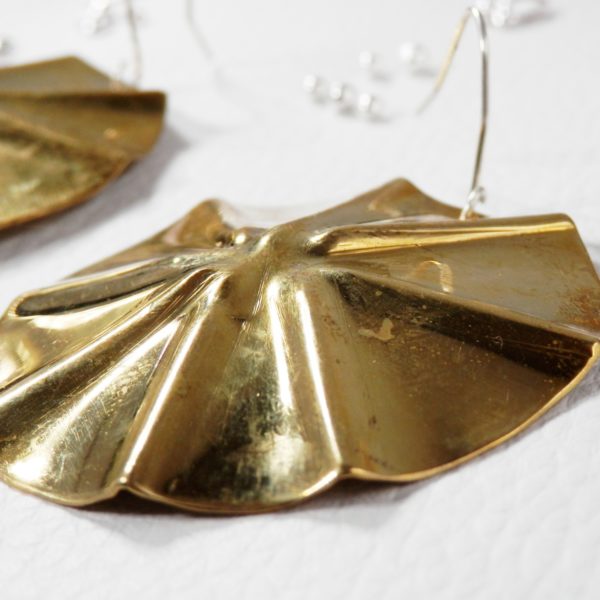 Boucles d’oreilles style afro-design en laiton et apprêts en argent massif.