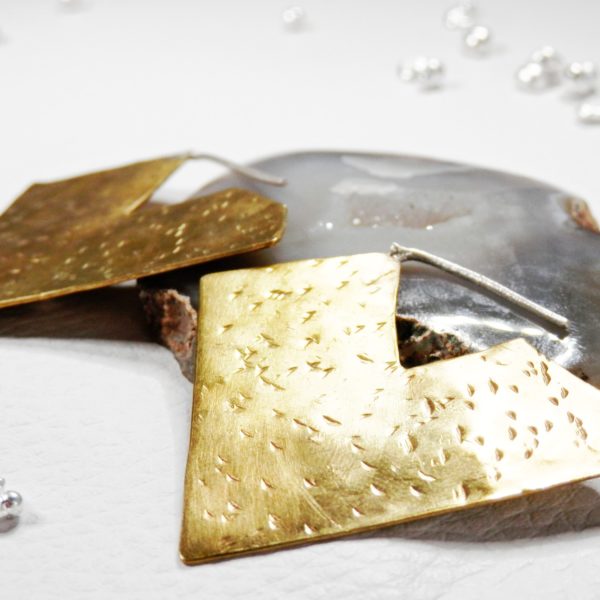 Boucles d’oreilles triangle laiton et tige en argent massif