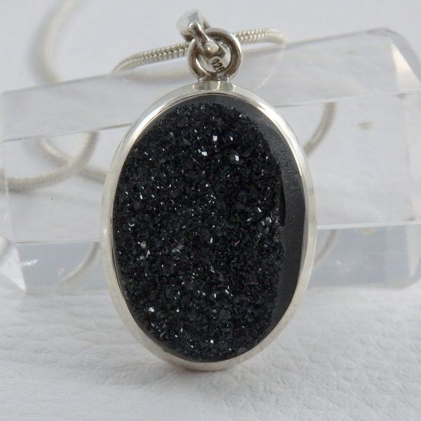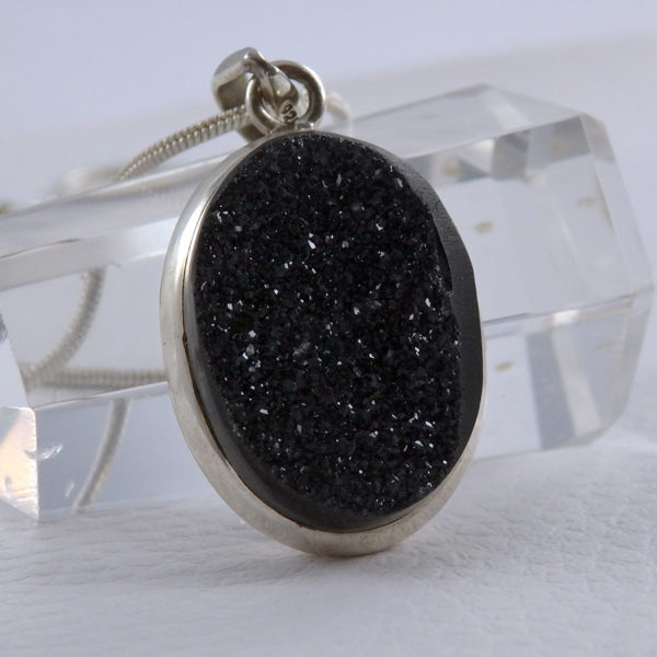Pendentif en argent massif 925 onyx druzy noir pailleté