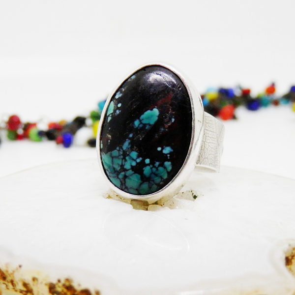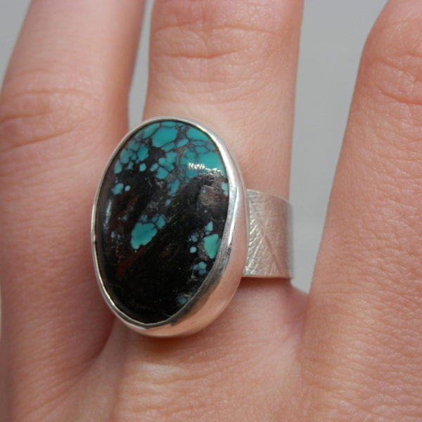 Superbe turquoise tibétaine pour une bague en argent simple et élégante