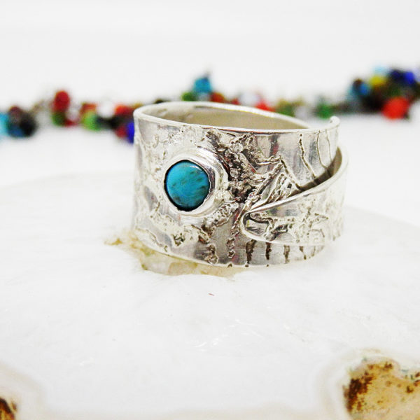 Bague Argent Ajustable Gravée Turquoise Unisexe
